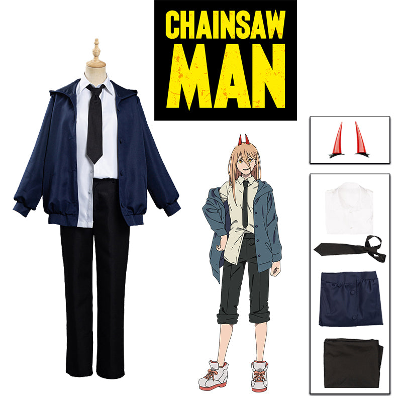 Anime Chainsaw Man Power Cosplay Costume Blue Jacket Uniform Outfit Blood Fiend Devil Women