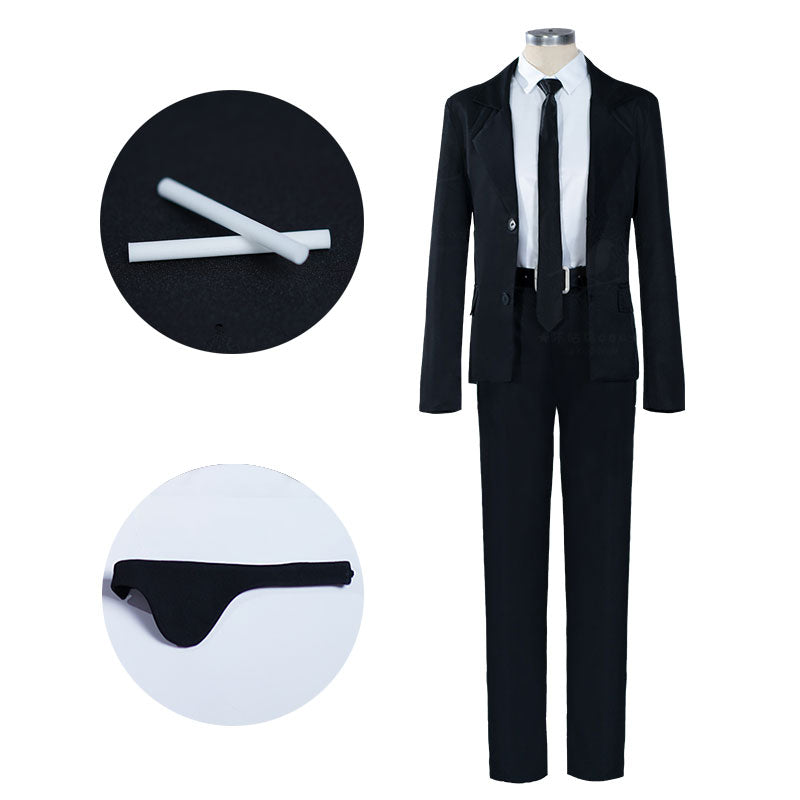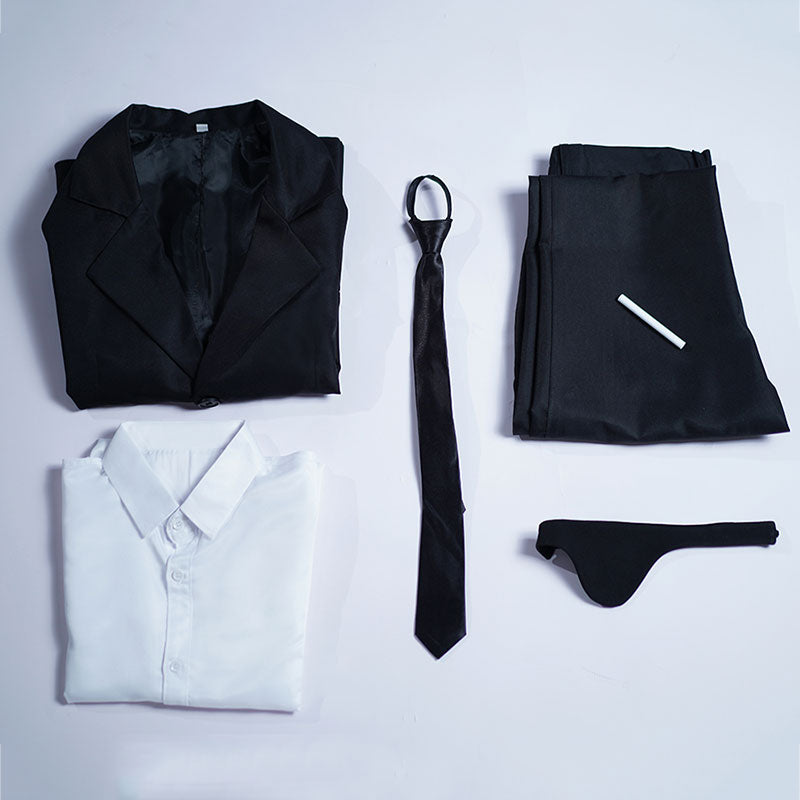 Package Includes: Shirt, Tie, Coat, Pants, Eyepatch, Cigarette props (Filter stick)
