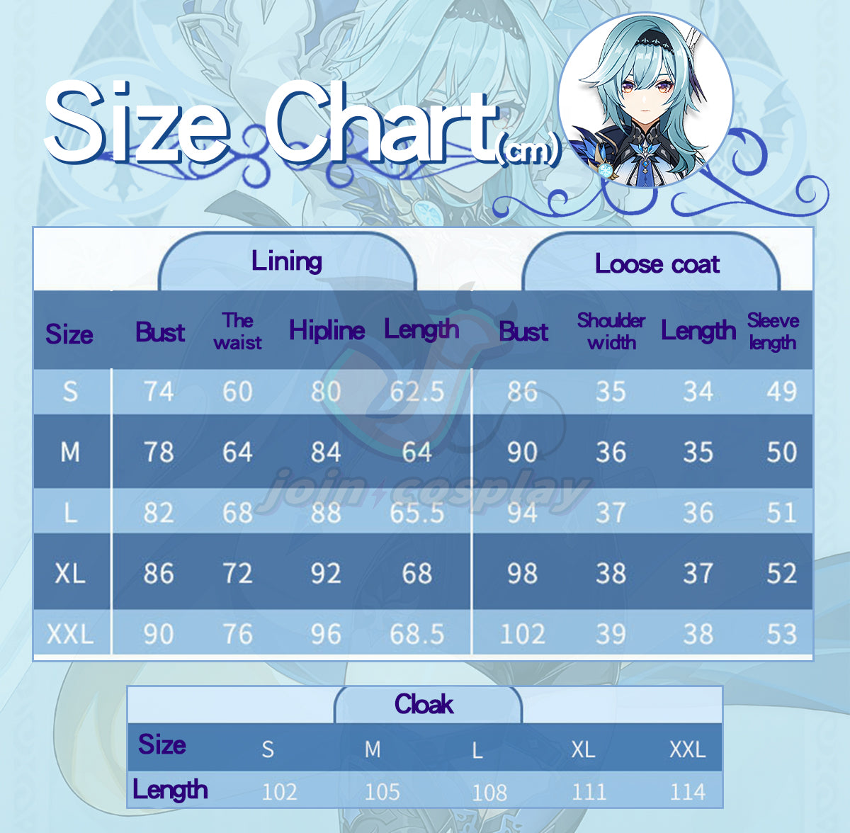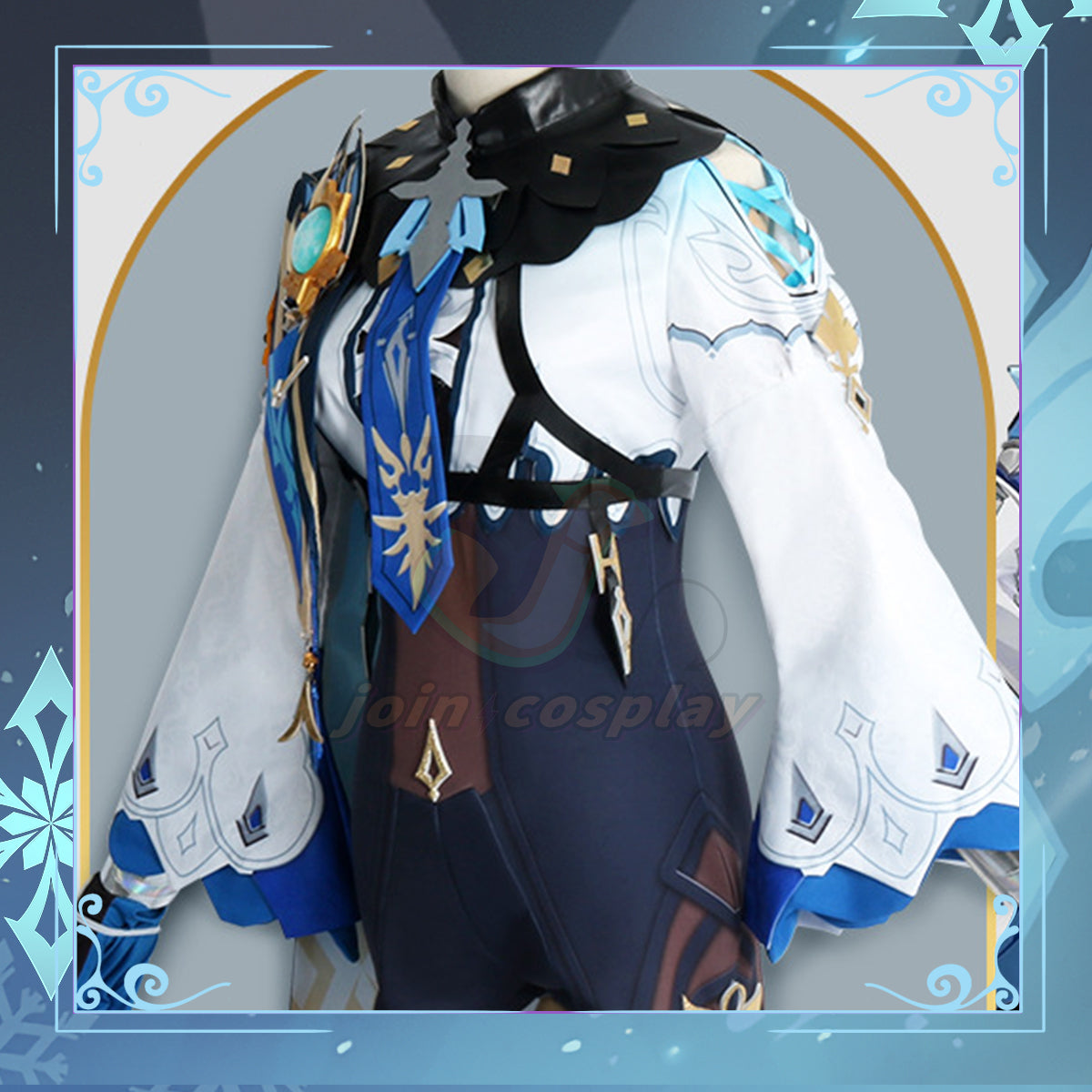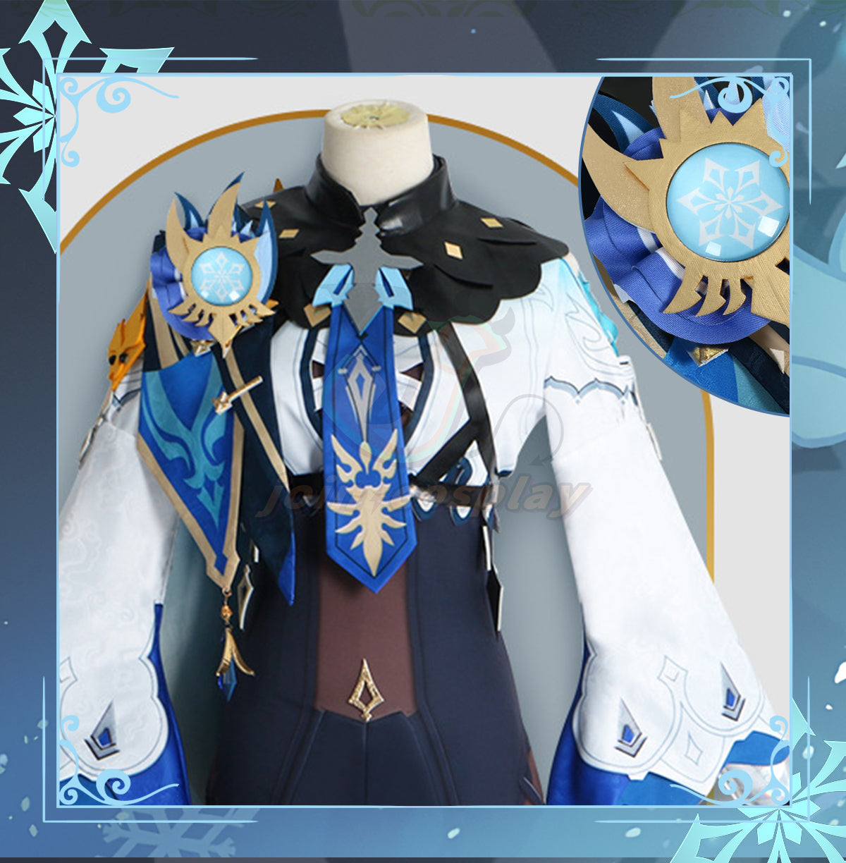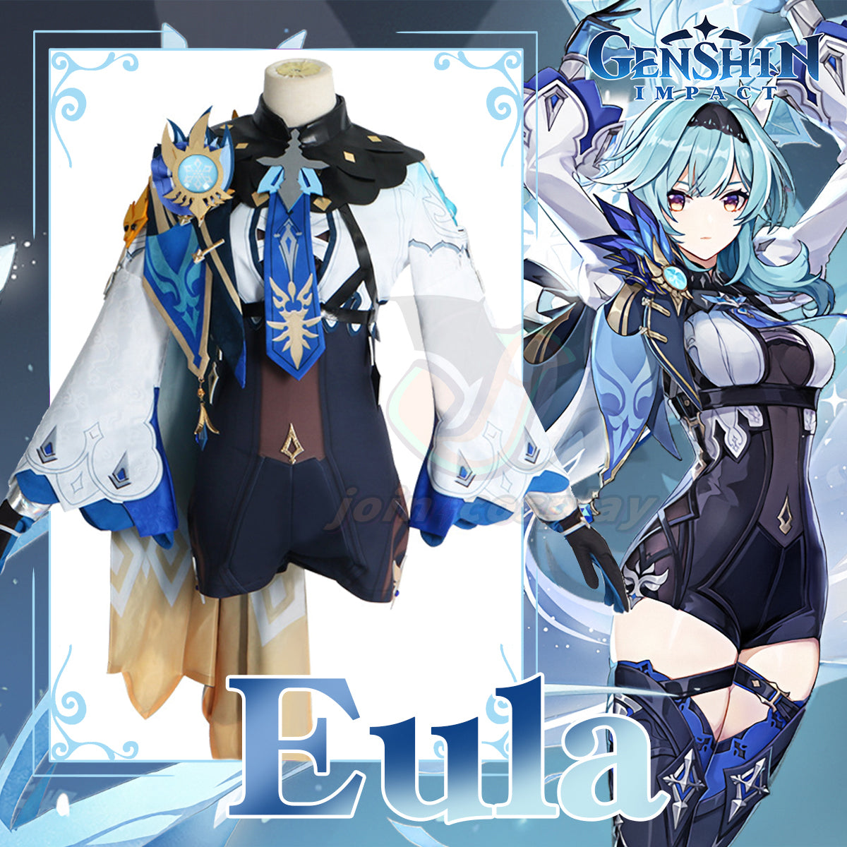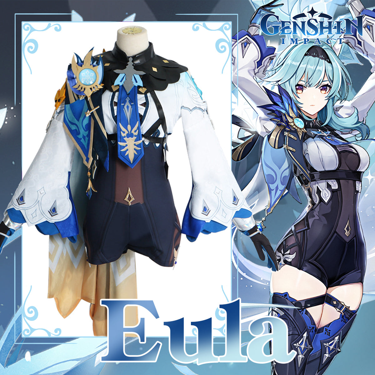 Series: Genshin Impact Characters: Eula Catagory: Cosplay Costume Material: Polyester fiber Package Include: ・Jumpsuit ・Collar ・Tie