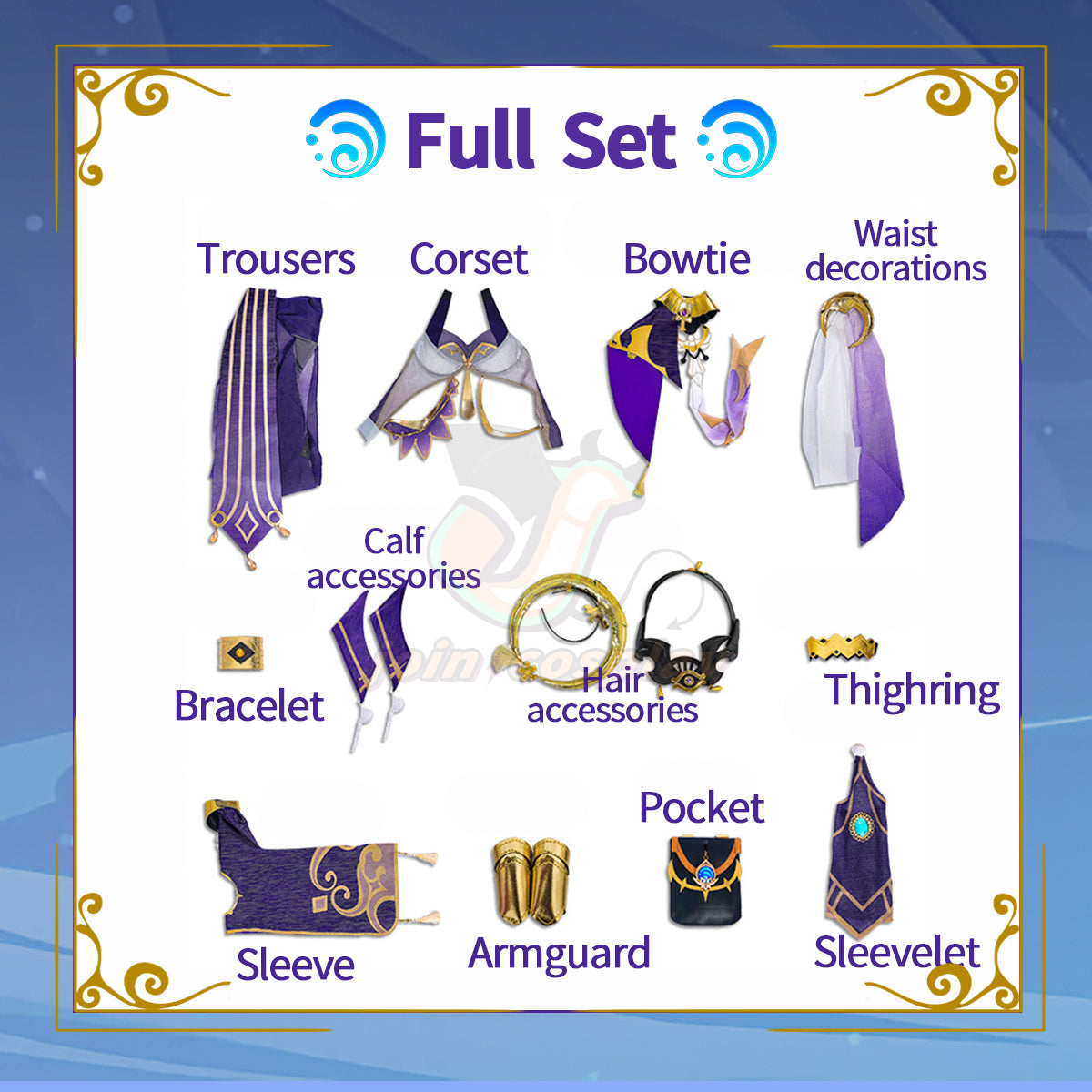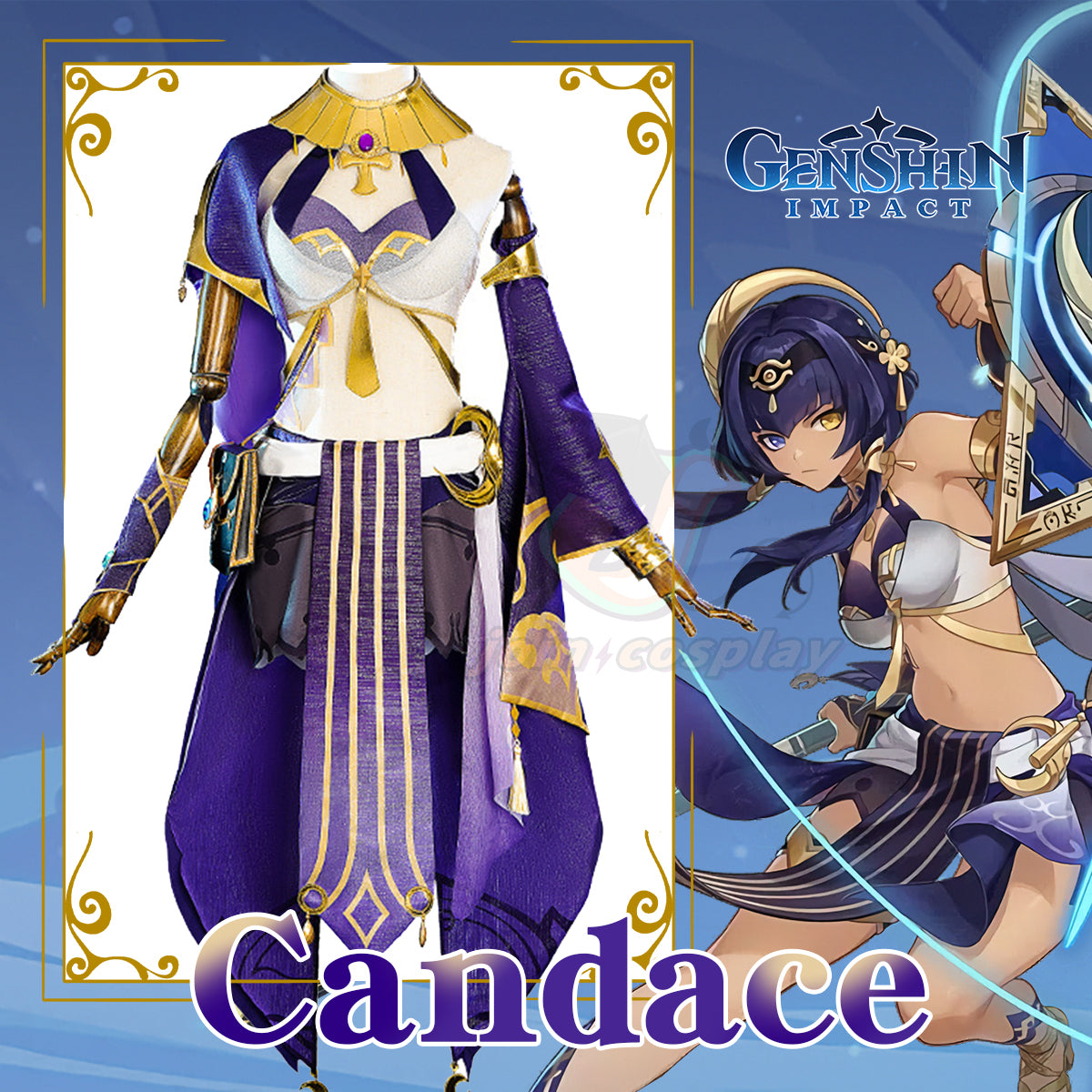 Series: Genshin Impact Characters: Candace Catagory: Cosplay Costume Material: Polyester fiber Package Include: ・Skirts ・Back flaps ・Leggings